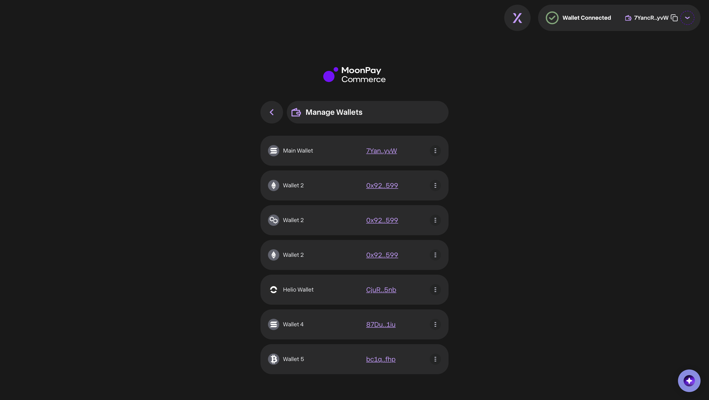 From the top right menu, toggle to manage wallets: