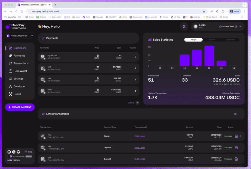 - MoonPay Commerce detects balance and auto-bridges/swaps the crypto to your preferred currency & recipient wallet