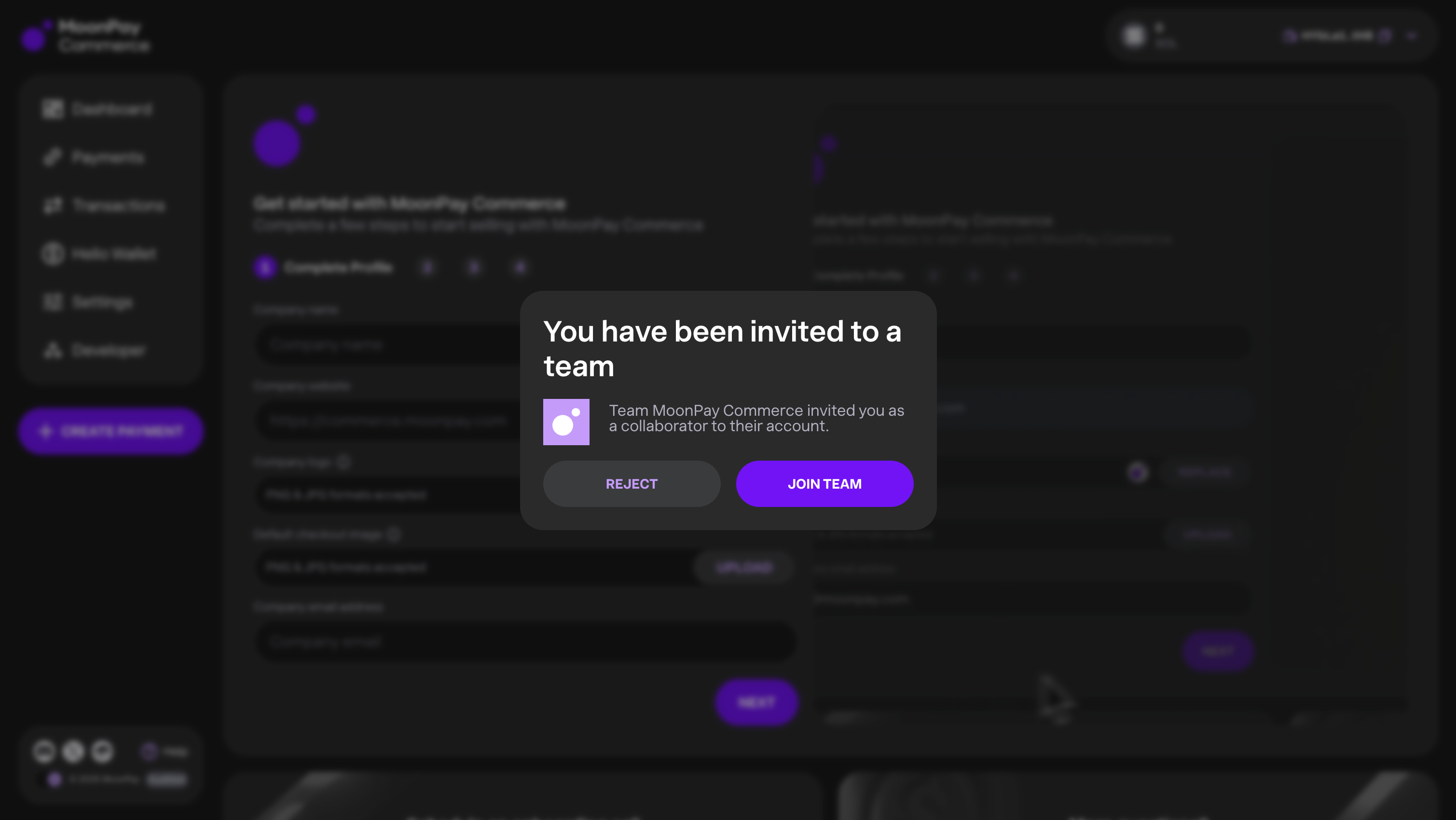 Invite collaborators to your MoonPay Commerce account and operate efficiently as a team