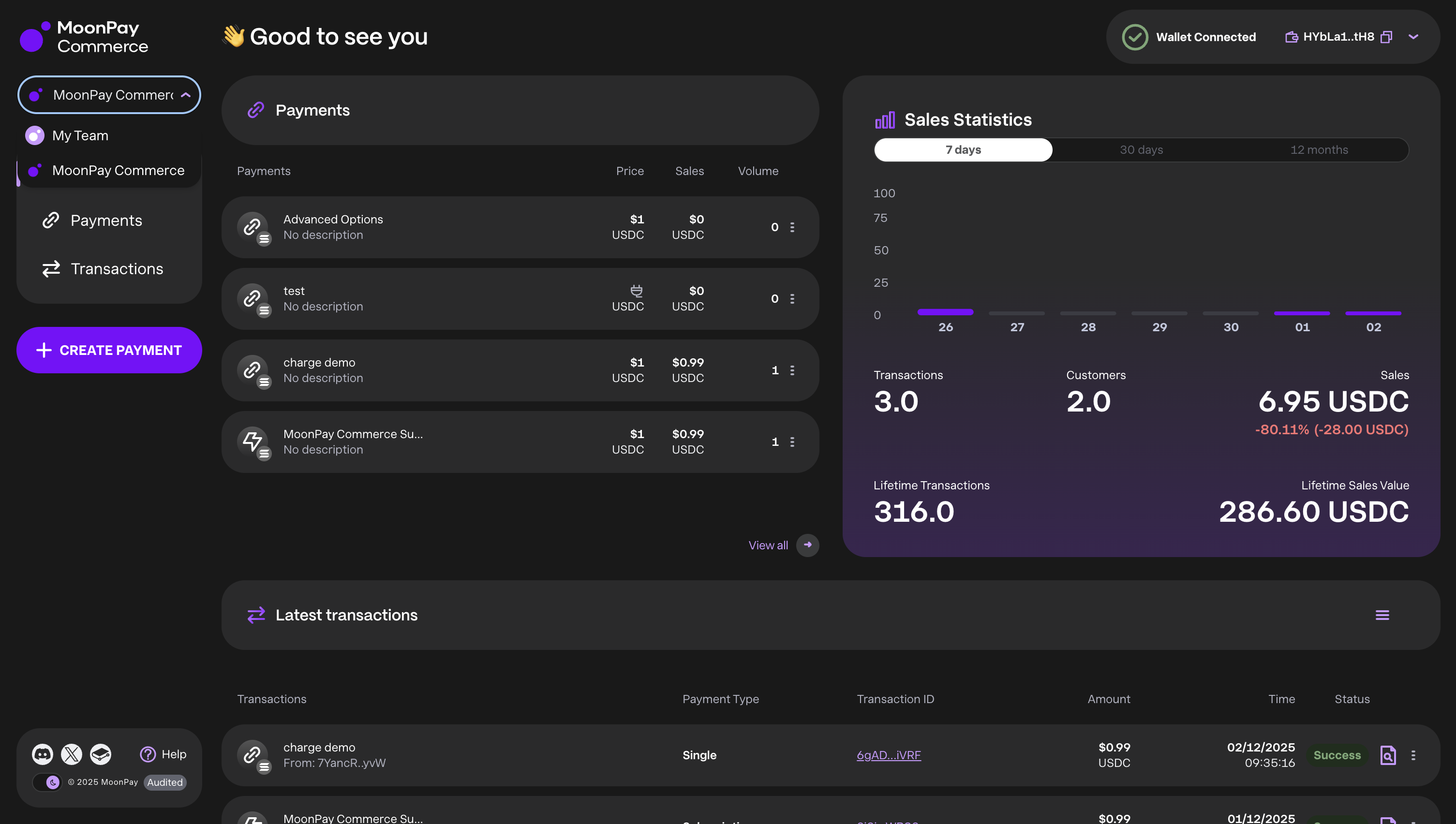 - Permissions: Full access to all MoonPay Commerce features